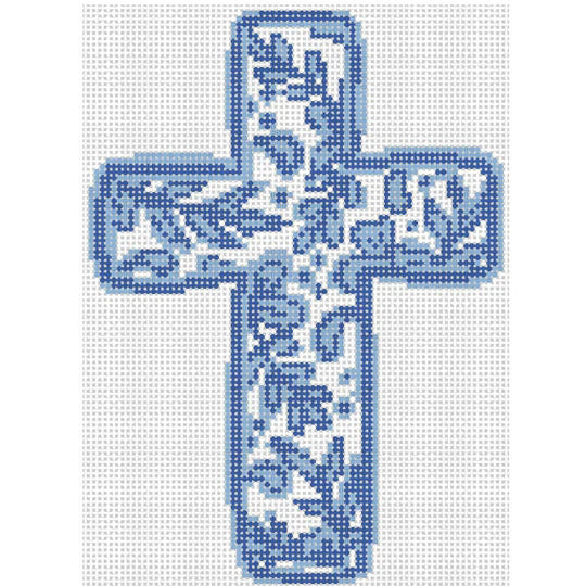 Officially Needlepoint K362 Chinoiserie Cross Blue