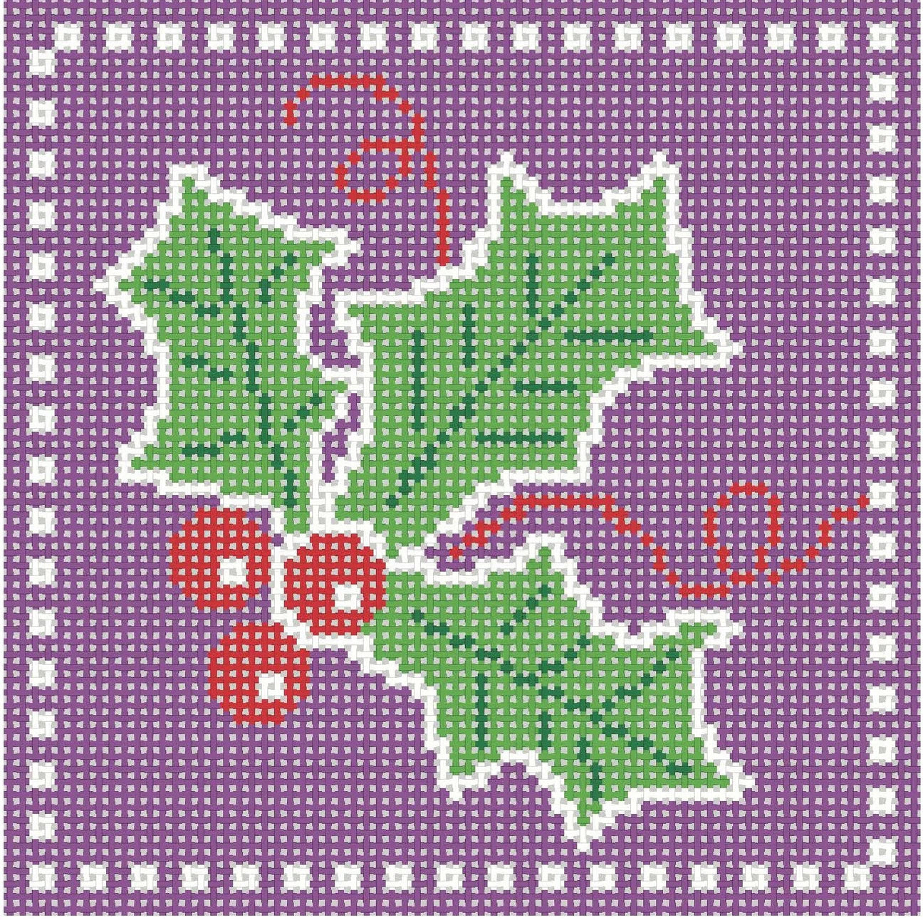 Officially Needlepoint K346 Holly Coaster Purple
