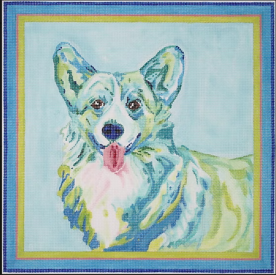 Kate Dickerson MC-PL-05 Megan Carn Welsh Corgi - blues and greens with pink