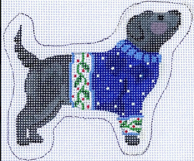 Kate Dickerson SER-OM-05 Sally Eckman Roberts Black Dog in Blue Sweater